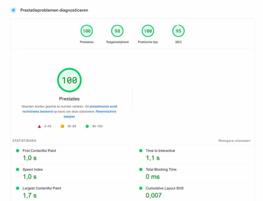 De Google PageSpeed-score is een cijfer van 0 tot 100 om aan te geven hoe snel een webpagina laadt voor bezoekers. Het cijfer is gebaseerd op een aantal technische richtlijnen die Google heeft opgesteld voor snelle webpagina’s.
